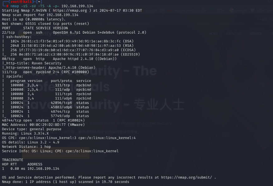 再来一个端口扫描nmap -sS -sV -T5 -A -p- 192.168.199.134