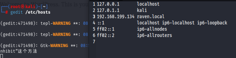 然后去访问一下/wordpress ,发现重定向到了一个网址raven.local