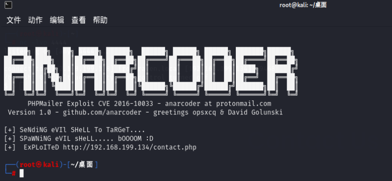 直接搜索PHPMailer 5.2.16 exp,找到了一个exp,PHPMailer < 5.2.18 - Remote Code Execution - PHP webapps Exploit (exploit-db.com),wordpress的CVE-2016-10033WordPress <= 4.6 命令执行漏洞(PHPMailer)(CVE-2016-10033)复现分析 - 先知社区 (aliyun.com) ,通过邮件漏洞进行反弹shell