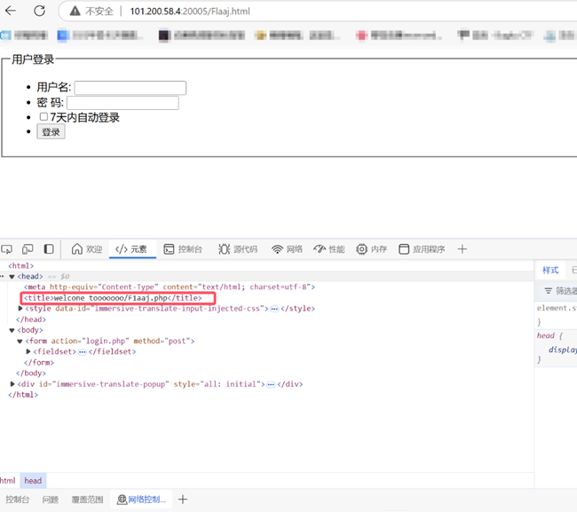 点击登录进入登录页面 在title标签里发现了提示/F1aaj.php