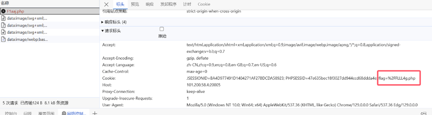 在cookie里发现了提示flag=%2FFLLL4g.php %2F是/