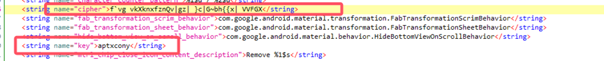 在资源文件下的rsa -> value ->strings.xml里找到加密后的flag 还有加密过程中使用的Key
