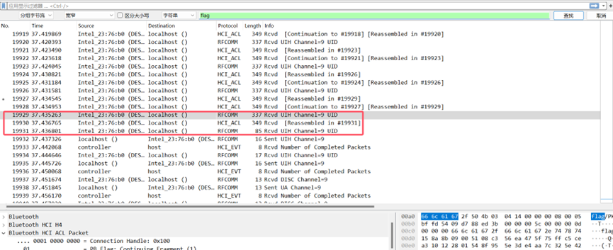 用Wireshark打开流量包 字符串搜索flag可以找到三个流量包,将这三个流量包16进制复制到010中去点多余的部分可以得到一个压缩包,流量包里可以看到zip的文件头504b00304 还有压缩了flag.txt和key